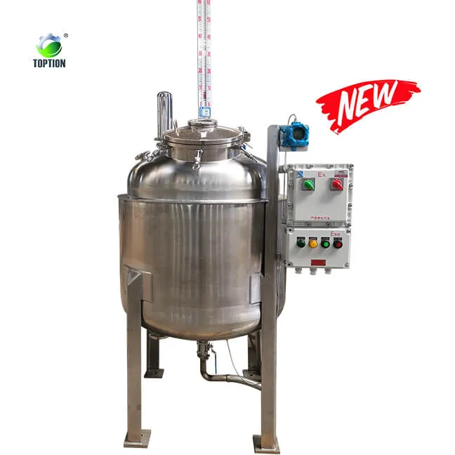 TOPTION מיכל אחסון מנירוסטה תומך בהתאמה אישית מקצועית, שכבה כפולה, שכבה אחת, והתאמה אישית של טווח קיבולת רחב. לקבלת הקפאת אלכוהול לפני הפקת אתנול צנטריפוגלי, בחר מקרר תואם שכבה כפולה כדי להשיג את האפקט לפני ההקפאה. לאחסון נוזלים לאחר סינון נבחר מיכל אחסון בשכבה אחת המשמש בעיקר למאגר לפני הכניסה למאייד בכדי להשיג מטרה של הזנה יציבה ורציפה.